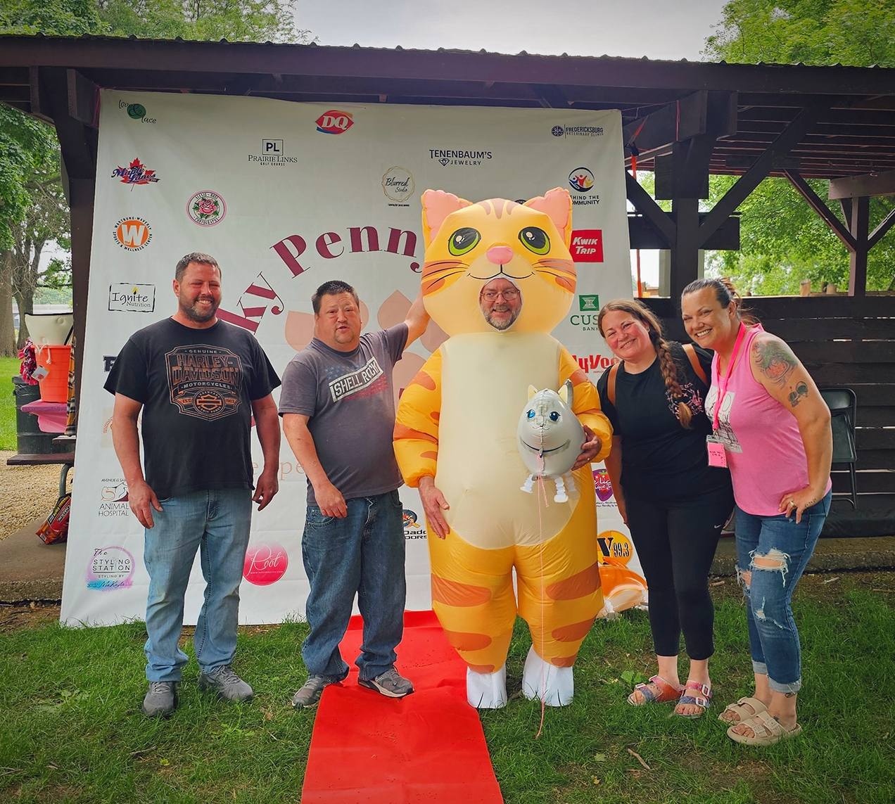Our mascot, Lucky the cat, posed on the red carpet for photos!