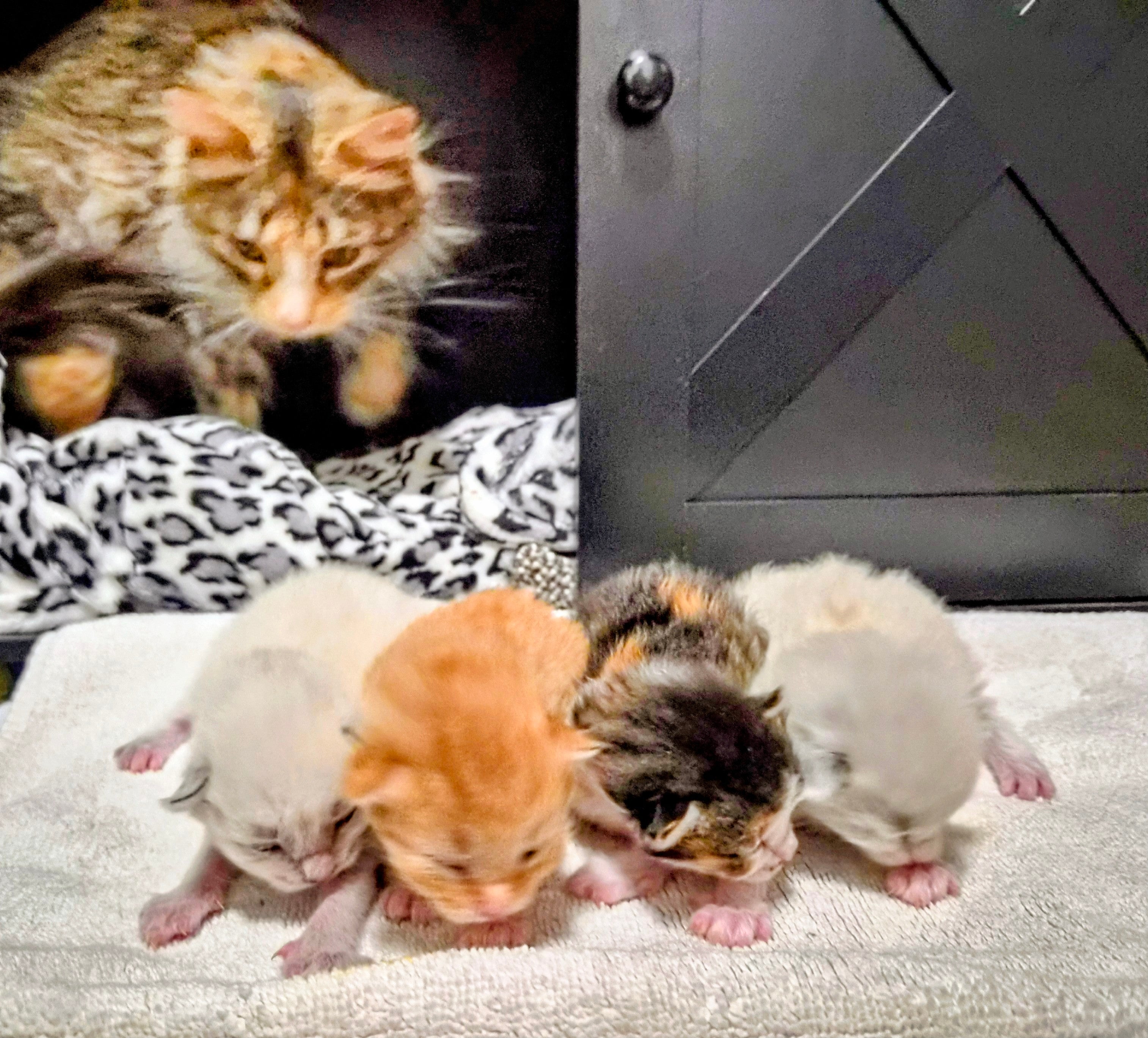 Mama had her babies, 5 sweet and beautiful little muffins, on 3/15/26. Sadly, we lost one 2 days later. 💔 The remaining 4 are very healthy, chunky, theirs eyes are opening and they are just the sweetest little babies!